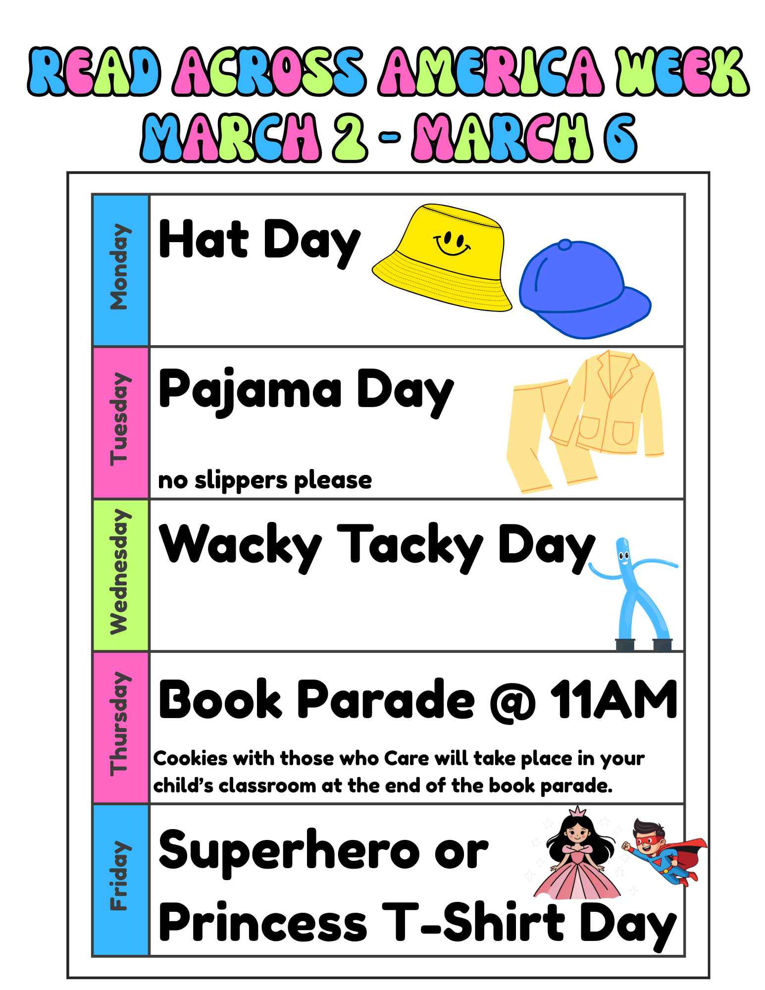 Read Across America Week is March 2-6! Here are our Themed Dress Up Days!